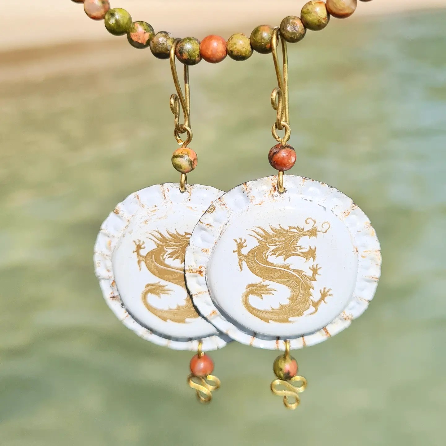 Used chains from the flea market, bottle caps from the park, everyday packaging materials are used different, upcycled and combined with stones from moments of life or dried up flowers. Wires made of brass, silver-plated copper, copper and aluminum or pearls from inspiring cute shops are also set-in, although it is still prefered to use a minimum of “new” materials. By including everyday material culture in our jewelry, sustainability is not only contributed in an ecological sense. It also influences on the social environment from the expressiveness value of the use of unconventional materials and upcycled jewelry play a role, as well as lower investments in newly manufactured materials classified as “high quality” do.